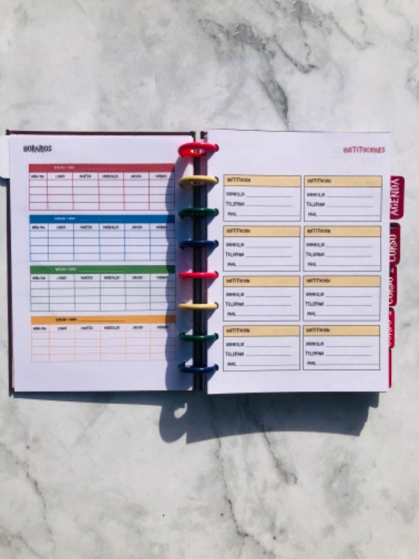 Es súper completa y práctica, ya que este sistema permite acomodar la agenda a tu gusto, podrías sacar y poner hojas donde las necesites⚡️