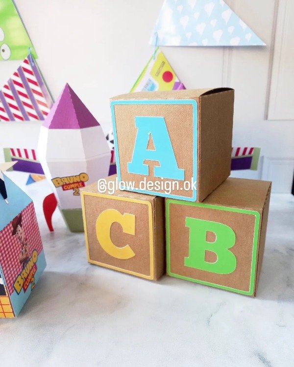 3 cajitas con las letras A B C. Sirven como sorpresita