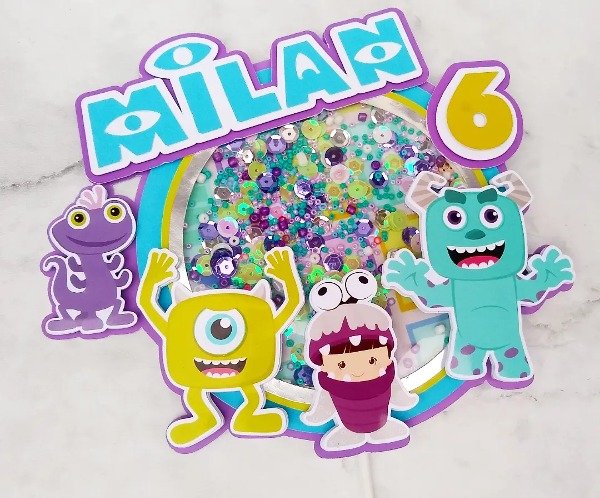Topper de torta 3D shaker Monsters Inc animado
